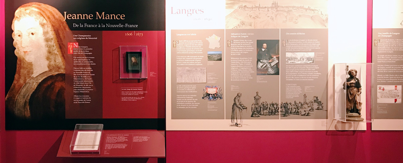 L’exposition présente la vie et l’œuvre de Jeanne Mance, fondatrice de l’Hôtel-Dieu et cofondatrice de Montréal. Suivez son parcours, d’abord à Langres (France) où elle est née en 1606, puis à Paris, où elle a su trouver les appuis nécessaires pour partir à Ville-Marie et y établir le premier hôpital de la ville, l’Hôtel-Dieu.
