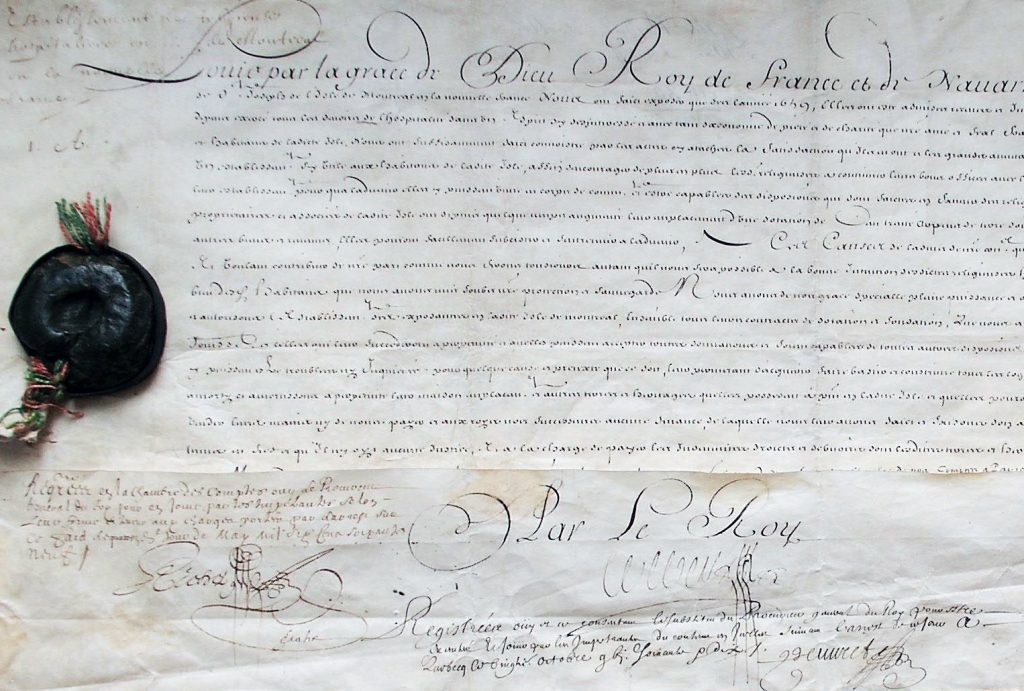 Lettres patentes du Roi Louis XIV pour l’établissement des Hospitalières de Saint-Joseph sur l’île de Montréal