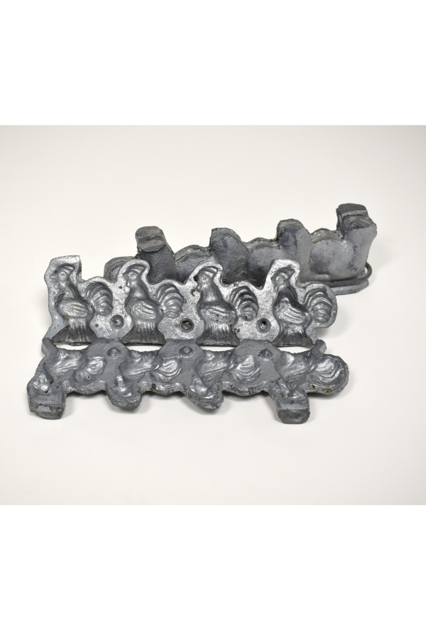 Ce moule en fonte étamée était servait à fabriquer des poules en chocolat à l’occasion de Pâques.