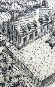Mademoiselle Mance’s House (Aristide Beaugrand-Champagne, Canada, 1942, ink and graphite on paper, RHSJM Archives)